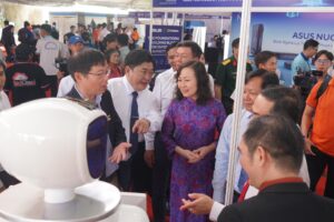Trong khuôn khổ sự kiện, gian hàng BrighTO JSC vinh dự đón tiếp đoàn Lãnh đạo tỉnh Đồng Nai, dẫn đầu là Phó Chủ tịch UBND Tỉnh Lê Trường Sơn. Việc trực tiếp giới thiệu các giải pháp Tổng đài AI và Robot AI cho thấy tiềm năng ứng dụng công nghệ AI trong chuyển đổi số hoạt động quản lý, dịch vụ công và doanh nghiệp địa phương.
